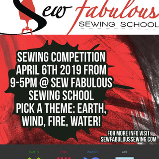 2. SEWING COMPETITION BATTLE OF THE ELEMENTS! APRIL 6TH Pick a theme (Earth, wind, fire, water) Call or Register on the website for more info.